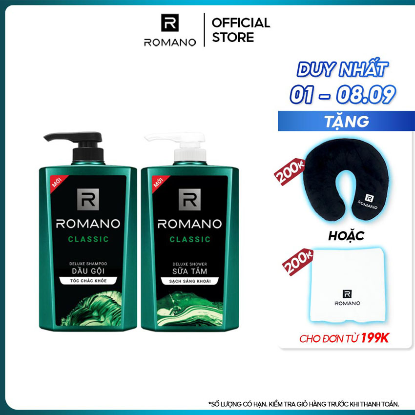 Combo Dầu gội và Sữa tắm Romano Classic cổ điển lịch lãm 650g/chai – 268.000đ