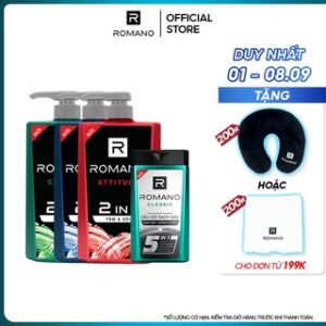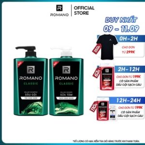 Combo Dầu gội và Sữa tắm Romano Classic cổ điển lịch lãm 650g/chai – 268.000đ