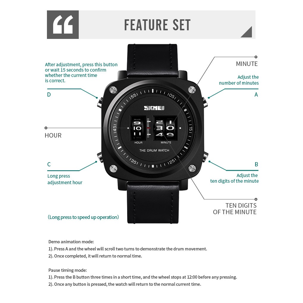 1) Nhấn nút B ba lần trong một thời gian ngắn và bánh xe dừng lại lúc 12:00 trước khi nhấn.