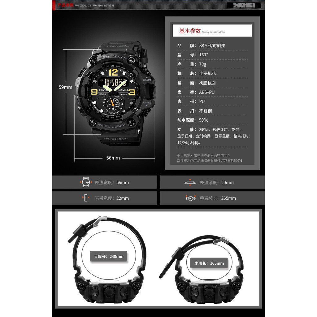 Đồng Hồ SKMEI 1637 Thể Thao Thời Trang Nam Ba Màn Hình Hiển Thị Ngày / Tuần / Báo Thức / Bấm Giờ – 260.000đ