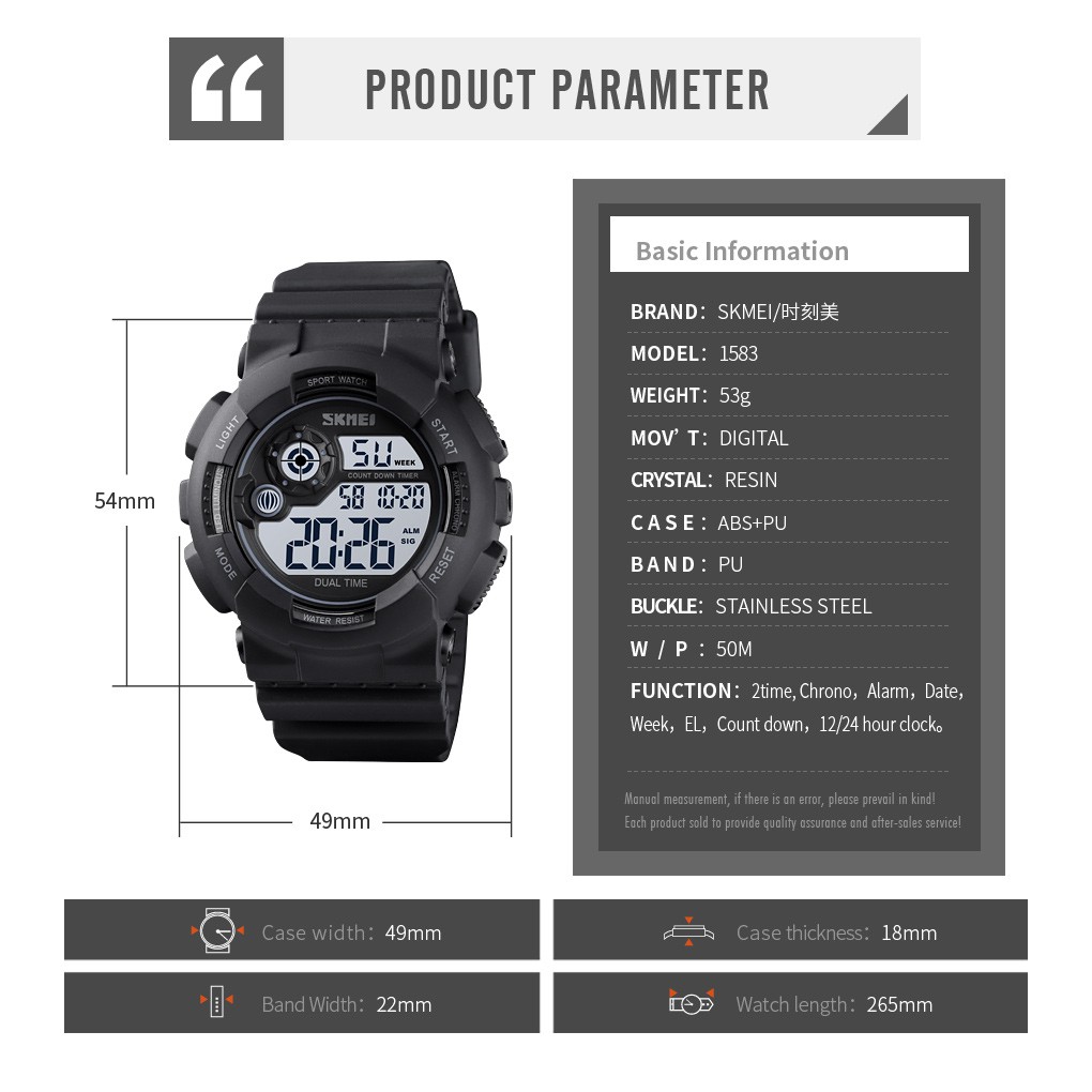 ▪ Chức năng: Chống nước, Đồng hồ bấm giờ, Đồng hồ hẹn giờ, Đồng hồ báo thức, Đồng hồ 12/24 giờ