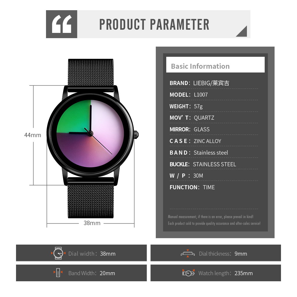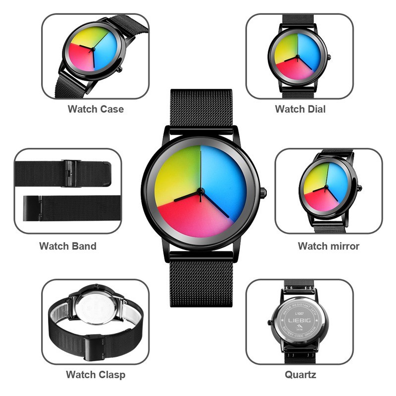 Đặc điểm: Mặt đồng hồ sáng tạo ( thay đổi màu theo hướng tay)