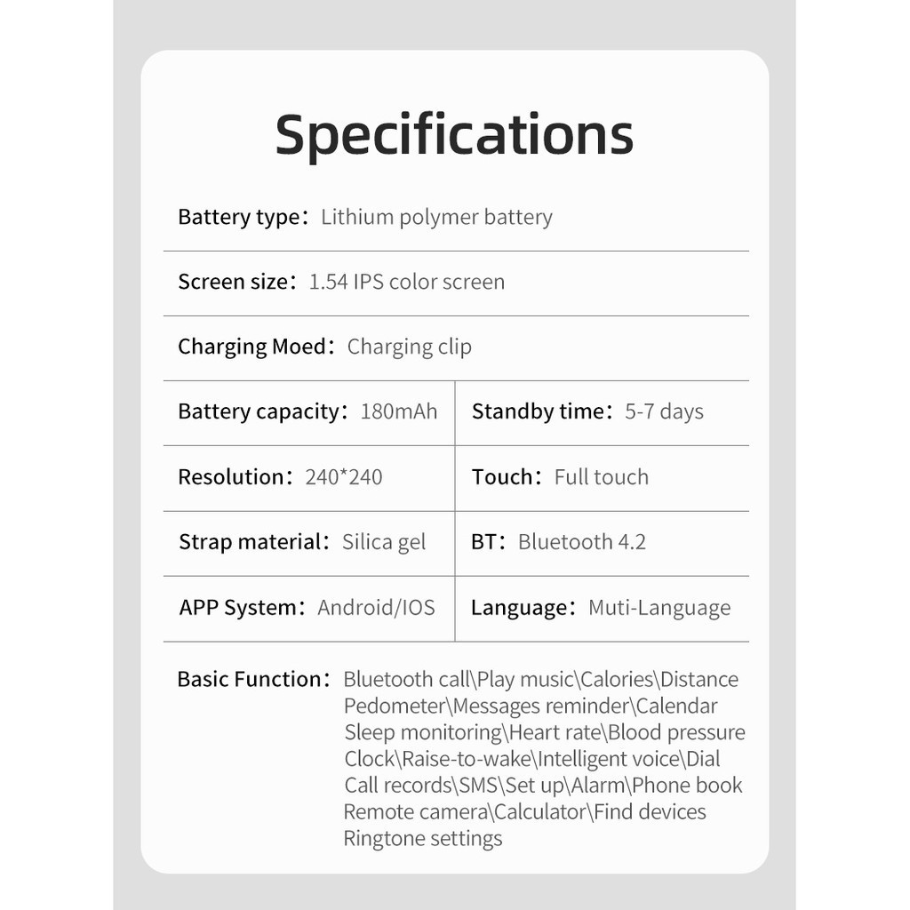 – Kích thước màn hình: 1.54 HD IPS, 240 * 240 Màn hình cảm ứng 2.5D mặt cáo, màn hình cảm ứng điện dung toàn bộ